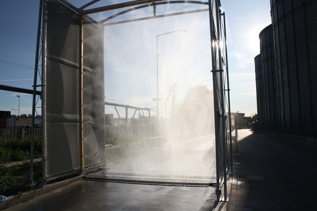 Brama bioasekuracyjna 360° Unidoz stanowi najlepszy sposób bioasekuracji dostępny na rynku, z opatentowanym systemem oprysku kół i podwozia. W porównaniu do mat dezynfekcyjnych, niecek, brama dezynfekcyjna gwarantuje pełną dezynfekcję przejeżdżającego pojazdu, a nie tylko dolnej części kół. Pojazd dezynfekowany jest z każdej strony (dezynfekcja 360°): boki, góra, przód, tył, podwozie.