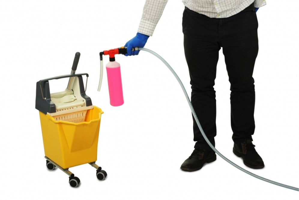 montowane na butelki od 500ml do 2l. Dzięki małym rozmiarom są podręcznym narzędziem, łatwym do przenoszenia jak i przewożenia na wózkach serwisowych. Unidoz M01 automatycznie pobiera koncentrat w określonych proporcjach i miesza go z wodą.